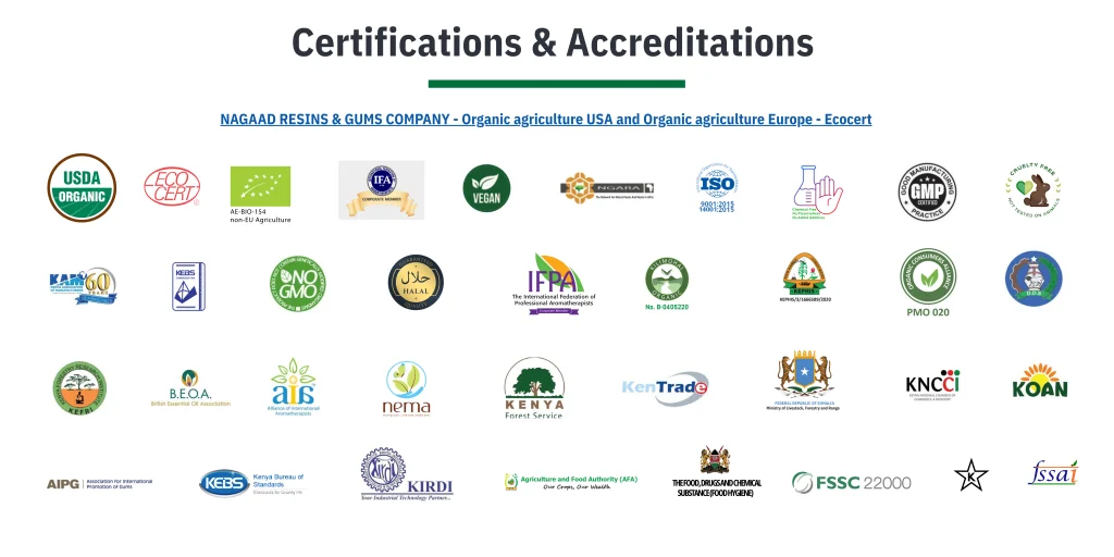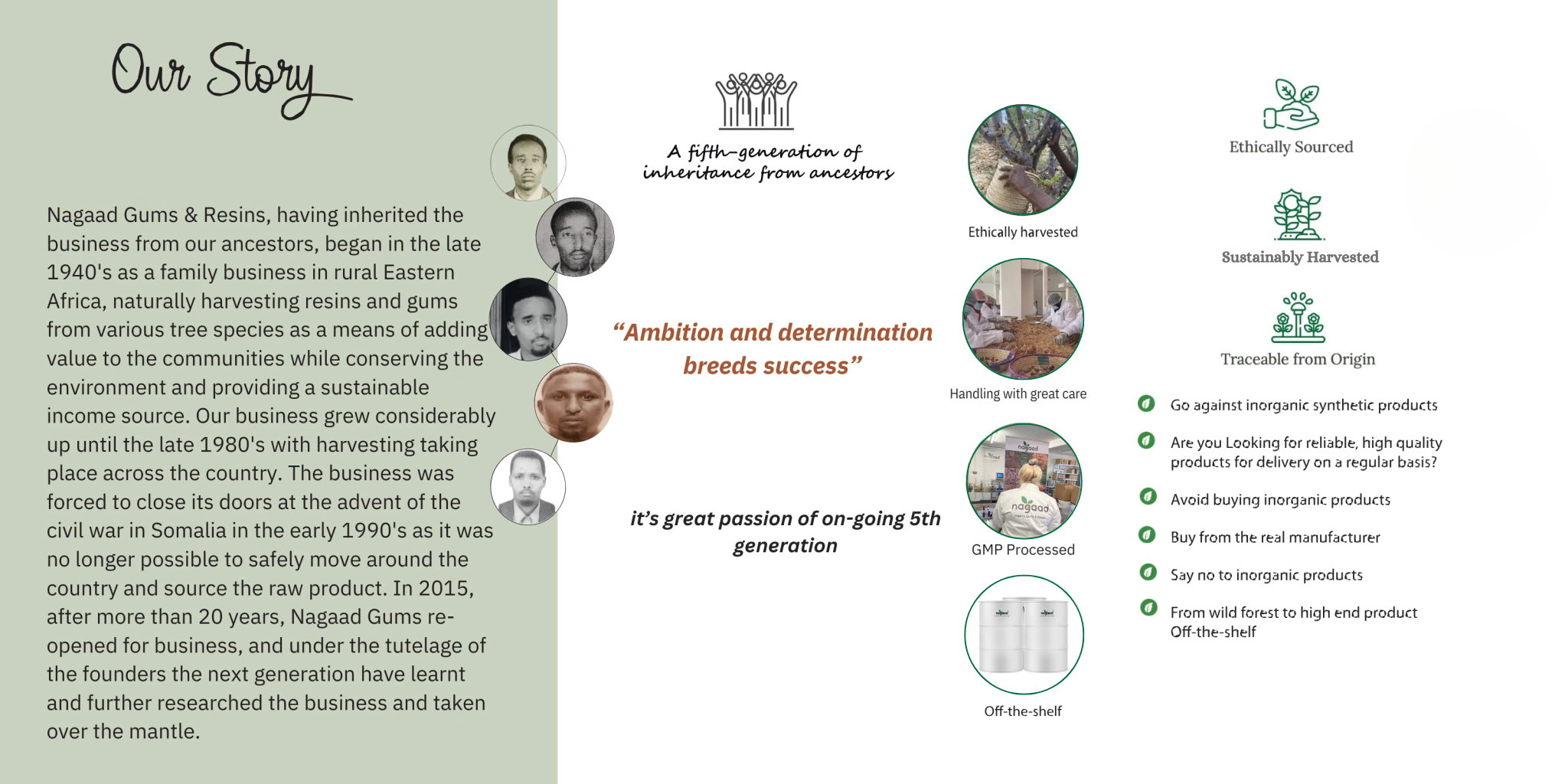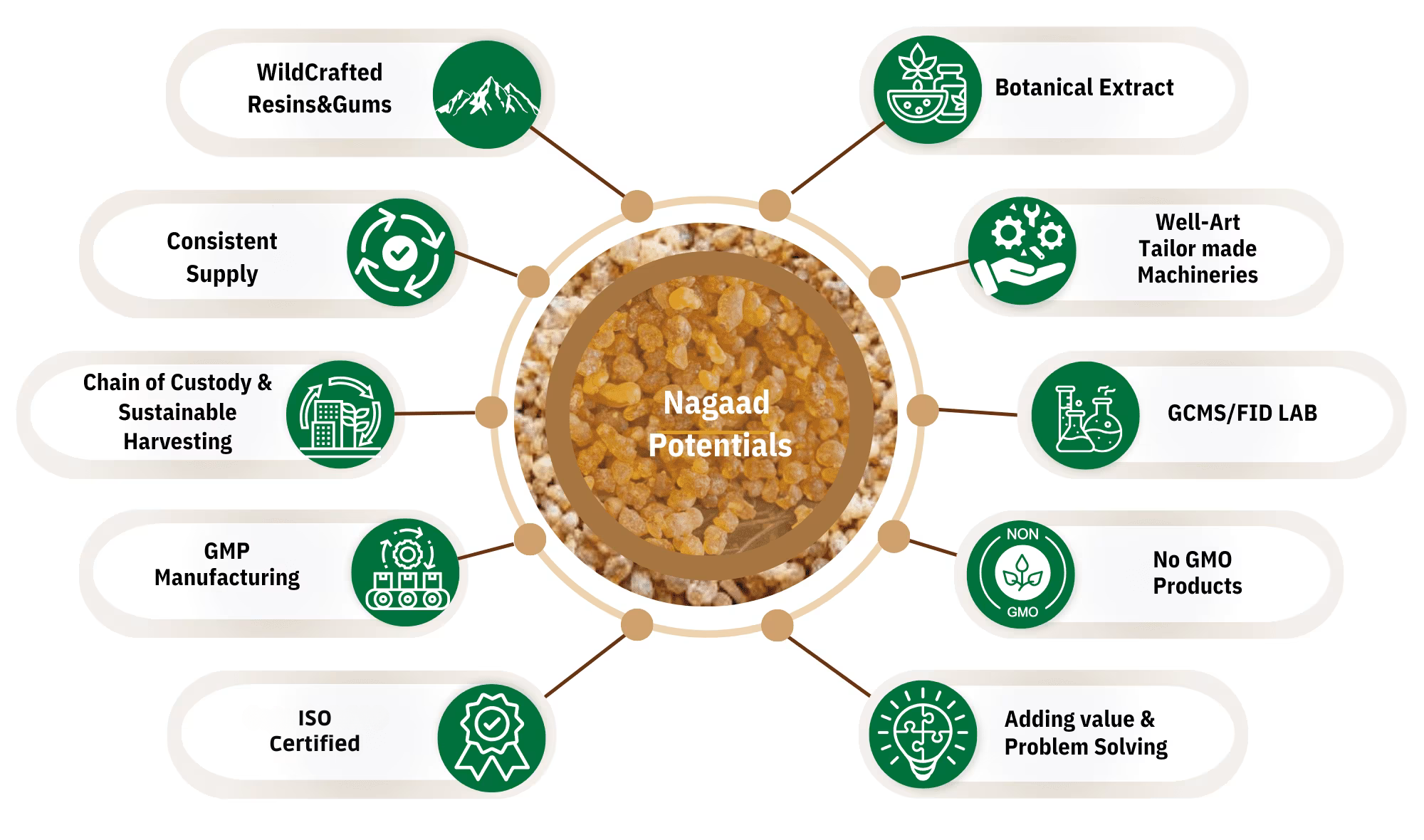 Nagaad is the only company to have successfully modernized the Frankincense, Acacia gum, and Commiphora Myrrh resin industry. Through cutting-edge extraction, formulation, and production techniques, we’ve revolutionized how these ancient healing resins are used in contemporary healthcare, wellness, and industrial applications. Our proprietary extraction and spray powder facilities enable us to deliver superior quality and consistency