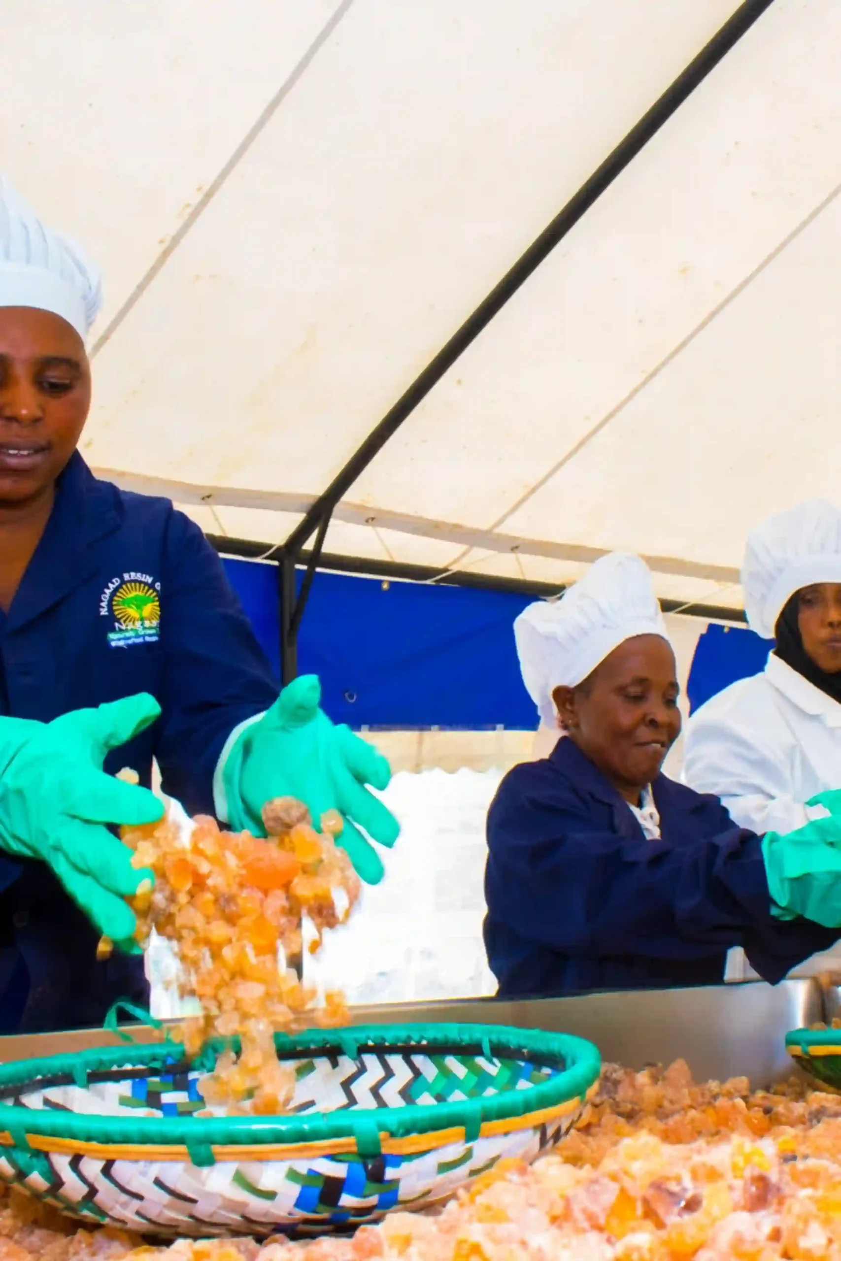 The trees of Organic Acacia seyal grow under extreme climatic conditions in Eastern Africa and the Gum Arabic exudate is collected naturally from the stem. The exudate hardens into the Gum Arabic and Nagaad Gums, in collaboration with the local communities, harvests the gum for further processing and sales.