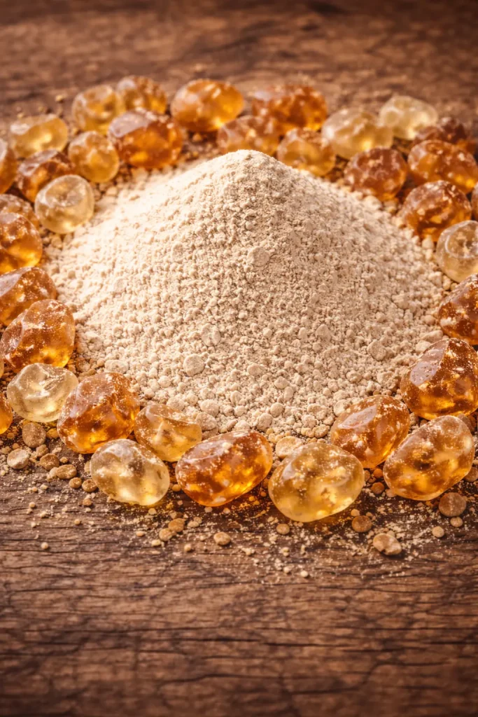 Gum arabic is a dried sap obtained from the stems and branches of two acacia species: Acacia senegal and Acacia seyal. The gum obtained from the Acacia senegal, also known as hard gum, is lighter in colour. Gum from the Acacia seyal is also known as friable gum.